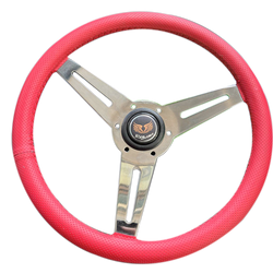VOLANTE CALASICO TACTO PIEL CROMO ROJO